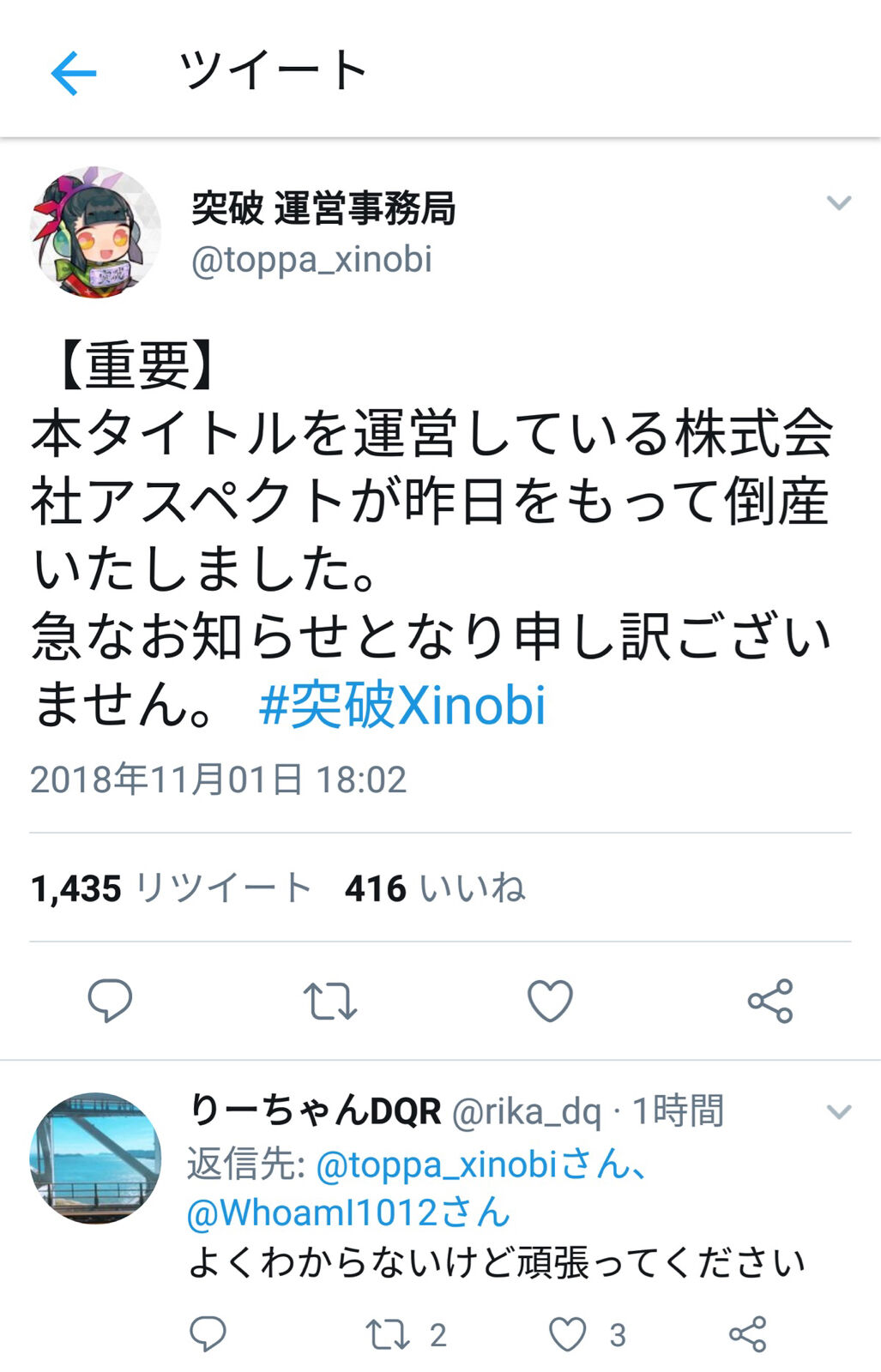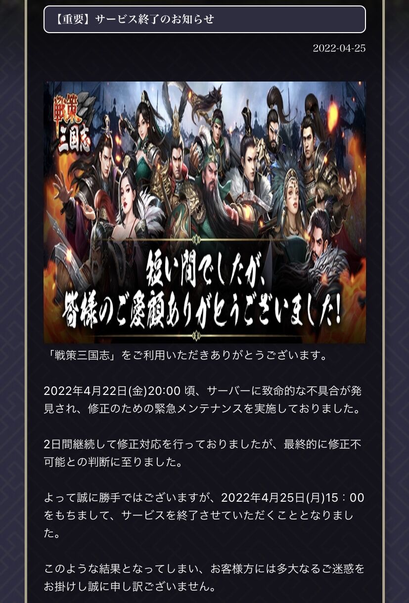 なんにせよ課金してたやつ死亡のお知らせか